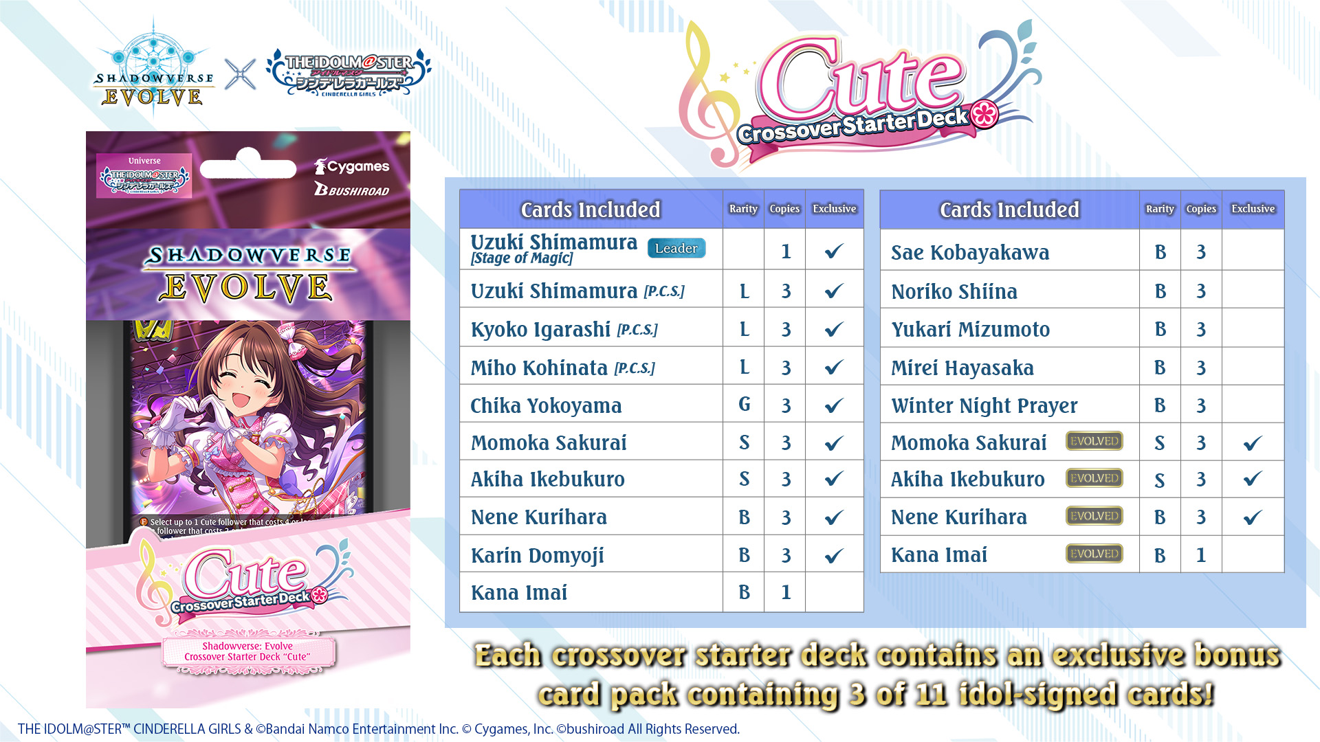 CP02 Idolm@ster Cinderella Girls (English) Shadowverse: Evolve Starter Deck “Cute” (Prebuilt Deck) * PRE-ORDER Ships Oct.11